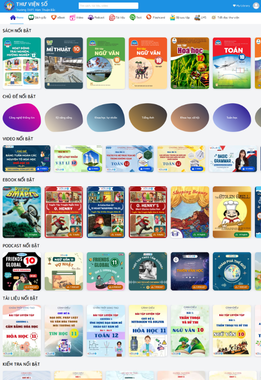 Ebook: Nhà trường cung cấp Ebook bộ sách giáo khoa, Ebook sách giáo viên mà trường đã chọn lựa và các Ebook học tiếng Anh bằng AI hay eBook tham khảo lên thư viện số để học sinh và giáo viên tham khảo khi không mang sách giấy bên cạnh.